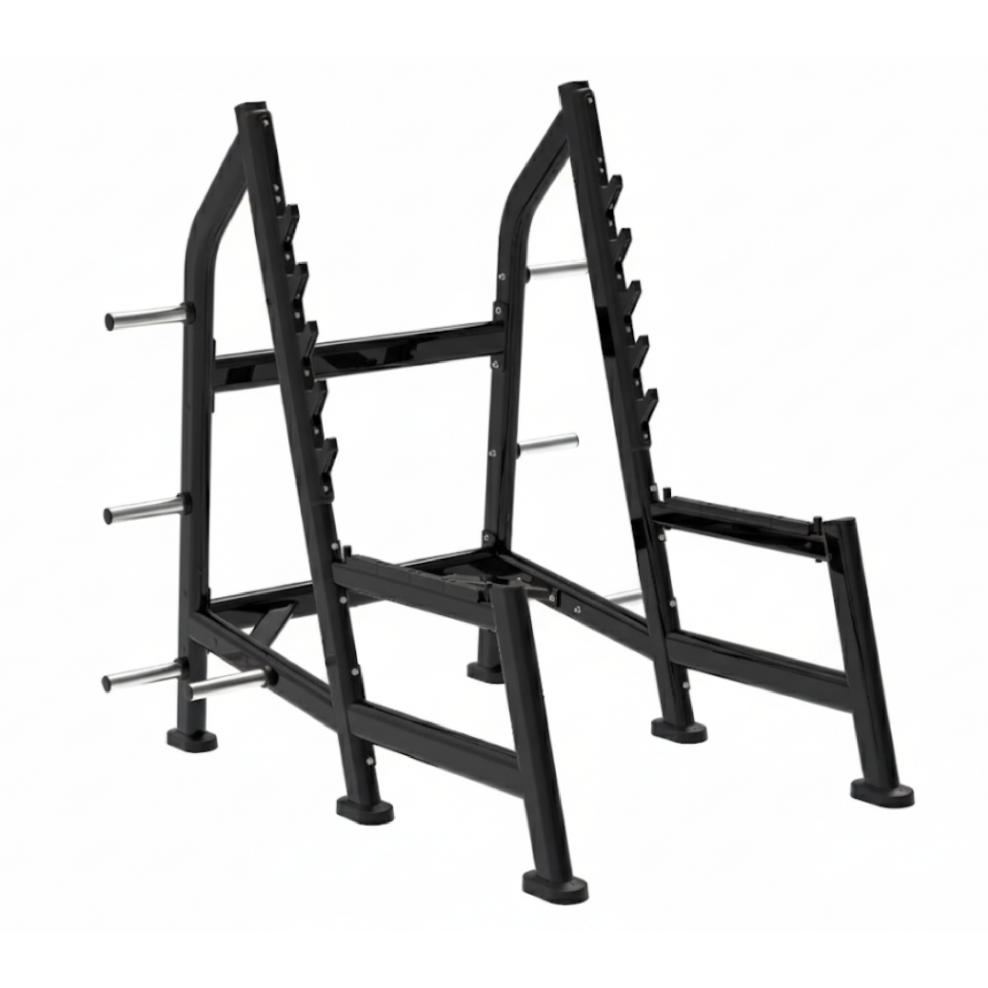 Equipped with integrated plate storage and a compact, space-efficient design, it combines functional utility with commercial-grade durability — perfect for both elite fitness centers and high-end home gyms.