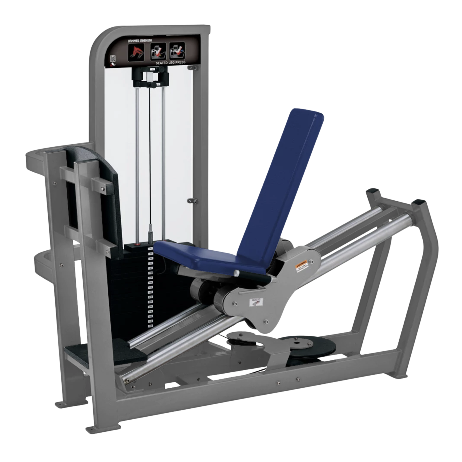 Maintenance-free stainless steel guide rails provide exceptionally smooth, quiet motion, ensuring a consistent training experience even in high-traffic commercial environments. The seated design offers stable body positioning, while the roller-based seat adjustment allows users to quickly dial in proper setup with minimal effort. Built to Hammer Strength’s exacting standards, this leg press is ideal for facilities seeking reliable performance, intuitive use, and proven biomechanics.