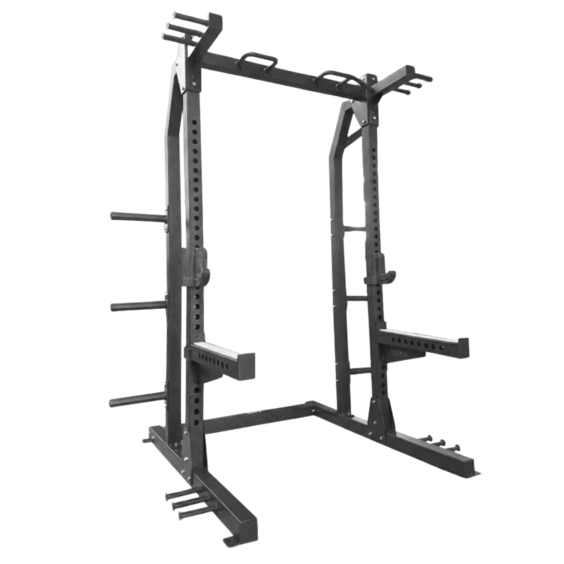 Commercial-grade half rack for barbell and power training