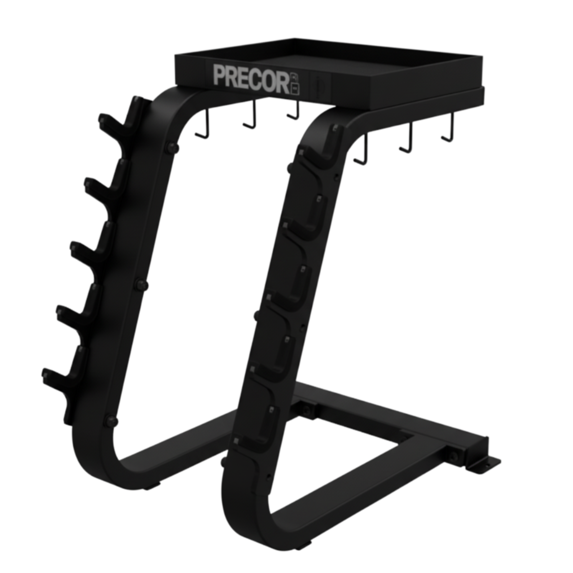 The Precor Icarian Accessory Rack is a compact, durable storage unit designed to keep cable attachments and gym accessories neatly organized. With five large bar catches, six plated handle hooks, and a spacious flat tray with a rubberized mat, this rack provides versatile storage for bars, handles, and other non-handle accessories. Built with Precor’s commercial-grade durability, it’s a must-have for maintaining a clean and efficient training environment.